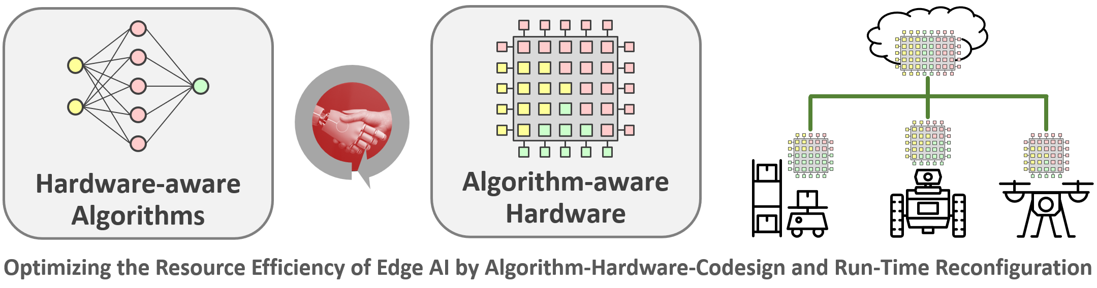 Edge AI verlagert Machine Learning von der Cloud näher zu Endgeräten oder sogar direkt in die Sensor-Aktor-Systeme, um Echtzeitentscheidungen zu ermöglichen und den wichtigen Anforderungen an Privatsphäre und Sicherheit gerecht werden zu können. Dies ist essenziell für Anwendungen in den Bereichen autonomes Fahren, Industrie 4.0 oder Smart Home. Hardware-Software-Plattformen für das Edge Computing unterliegen starken Ressourcenbeschränkungen und Anwendungen müssen in der Regel Kompromisse eingehen in Bezug auf die Genauigkeit der Berechnungen. Wir setzen daher auf skalierbare heterogene Architekturen, die Domänen-spezifische Architekturen mit GPUs und FPGAs kombinieren. Falls es sich als vorteilhaft herausstellt, können unsere Systeme sogar im laufenden Betrieb ihre Hardwarearchitektur verändern. So können sie sich an neue Anforderungen anpassen und beispielsweise Verlustleistung, Leistungsfähigkeit oder Qualität der Ergebnisse optimieren.
